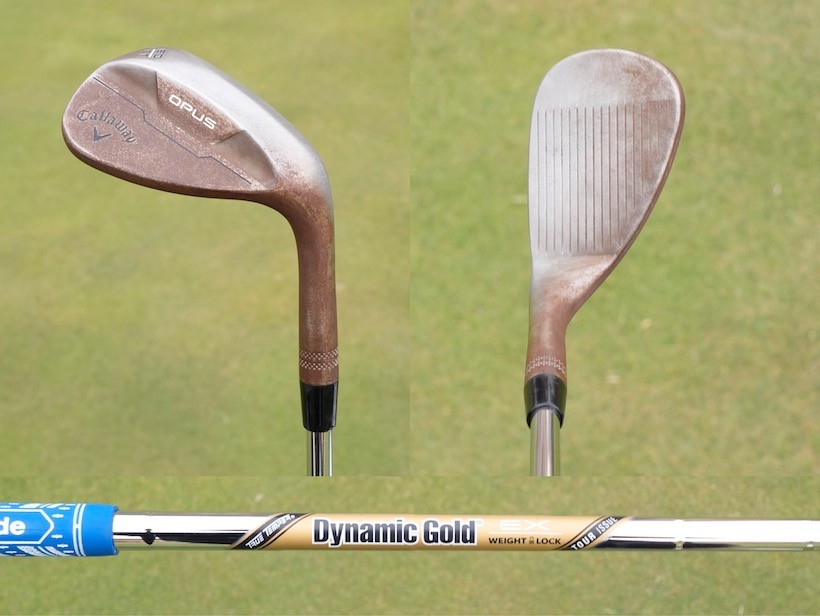 ウェッジはキャロウェイ「OPUS(オーパス)」ウェッジ、48、52、56、60度の4本セッティング。48〜56度のシャフトはN.S.PRO MODUS PROTOTYPE、60度のみダイナミックゴールド EX ツアーイシュー ウェイトロック。