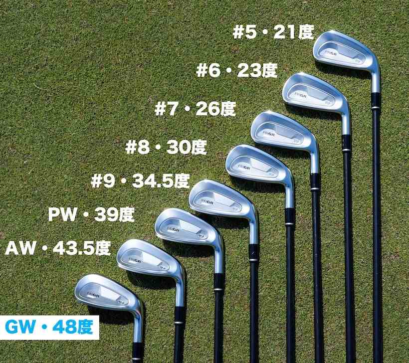 「プロギア 03 アイアン」は#5〜9、PW、AW、GWの8本がラインナップされている。ぶっ飛び系のロフト設定なので、PWが39度。となると、多くのゴルファーが所持している50〜58度のウェッジとは11度近いロフト差がある。これでは、番手間の距離差が大きすぎる! という問題を43.5度のAWと48度のGWが解決してくれるというわけだ。