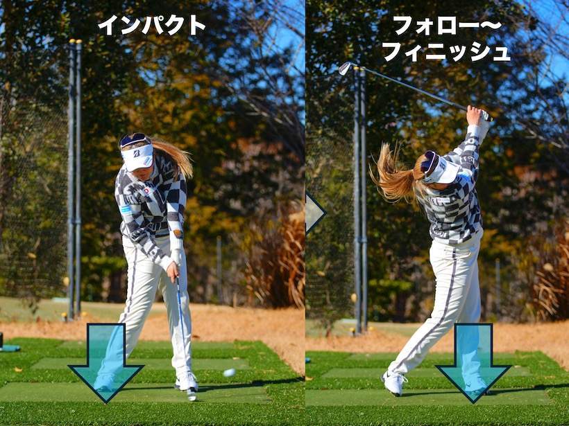 「ベタ足」スイングといえば桑木志帆! 右足の動きに注目!
