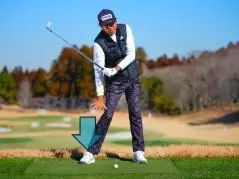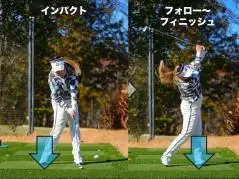 スイング中に右足を「2度」踏ん張ることで、ボールに力が伝わる分厚いインパクトのアイアンショットが打てているということだ。逆に右足がめくれてきたときは左に突っ込んでいるときで、右足の動きはいいスイングかどうかのバロメーターにもなっているという。