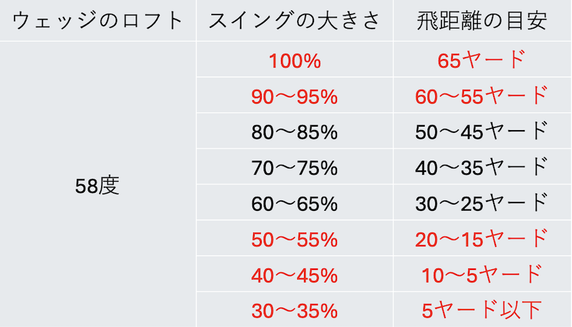 半端な距離を打ち分けるウェッジワークをチャート化してみた