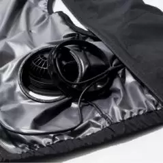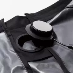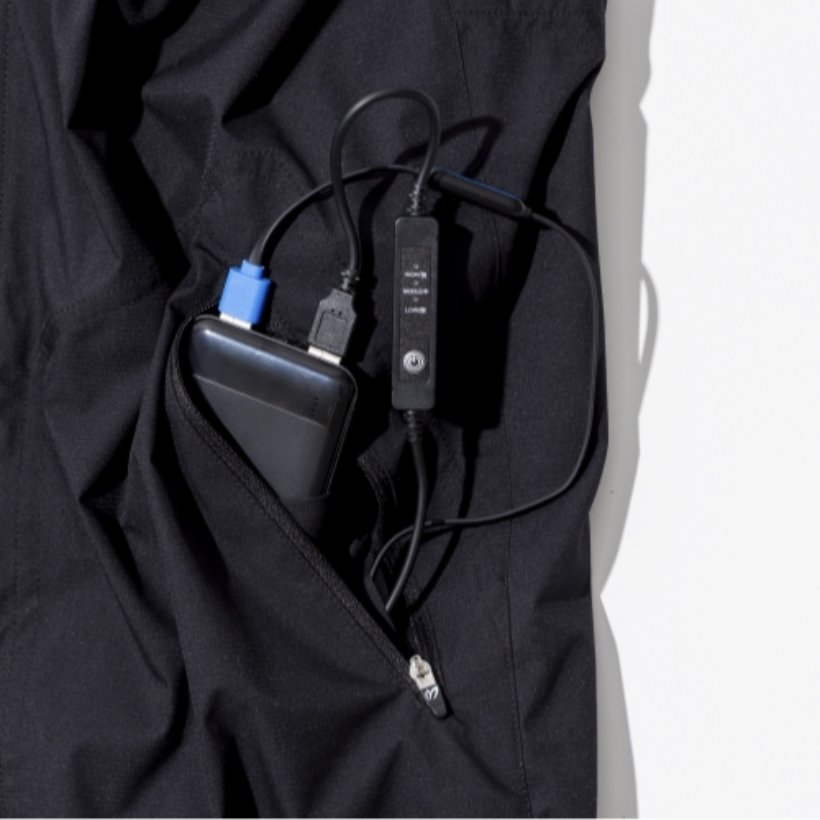 モバイルバッテリー専用の収納ポケットを使用することでスイング時のズレを軽減。長時間使用する場合にはバッテリーを2個使用し、左右の専用ポケットに収納が可能。(※モバイルバッテリー1個のみ付属)