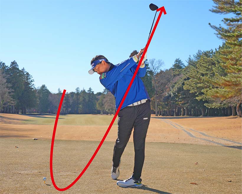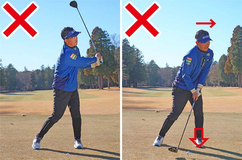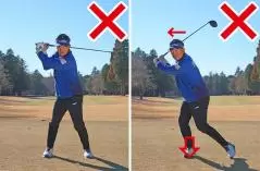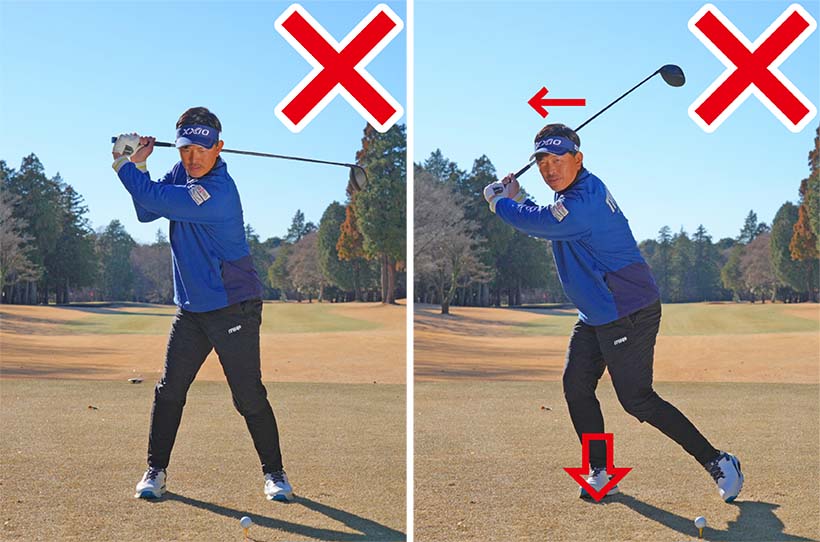 どちらもクラブヘッドの遠心力を引き出せないため、きれいな円弧を描くようなスイングができなくなるのです。