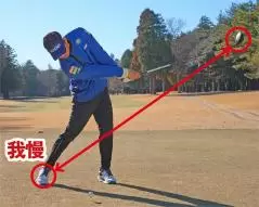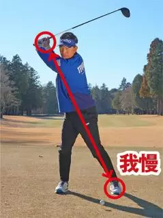 だからといって左右の体重移動を使いすぎるのはNGです。ダウンスイングで左足に思い切り体重を乗せてボールを引っぱたこうとして上体が目標側に流れると突っ込み打ちになってしまいます。