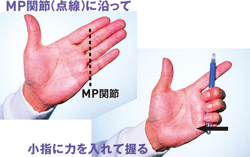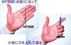 清永 その際、第3指の基節骨にクラブグリップを当てるようにし、第3指のMP関節の屈曲を深くせずに浅くすることがひとつのコツです。しかも第3指のPIP関節が中心となりその関節だけの屈曲を深くするのです。難しいですか?