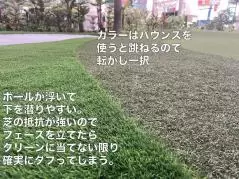 ラフもまた一筋縄ではいかない。人工芝とはいえ、順目・逆目が表現されており、思った以上に抵抗がある。実際のラフとは異なる感覚だが、これが逆に“クセになる”面白さを演出していた。どうやったら上手く打てるか? 寄せられるか? と攻略のしがいがあって楽しかった。