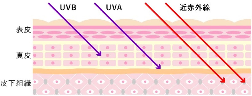 紫外線の約6倍※降り注ぎ、しかも、波長が長いため肌の深部にまで達しダメージを与えるといわれています。炎天下で肌を守るためには、紫外線だけでなく近赤外線(NIR)対策も重要です。
