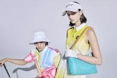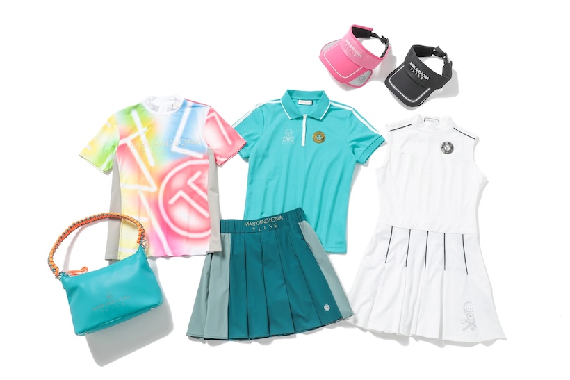 今季のコレクションでは、ネオンサイングラフィックを施したウェアや、爽やかなターコイズやイエローグラデーションのセットアップ、ネオンメッシュを重ねたカートポーチなど、サマーゴルフにぴったりなスポーツモダンなアイテムをラインナップ。