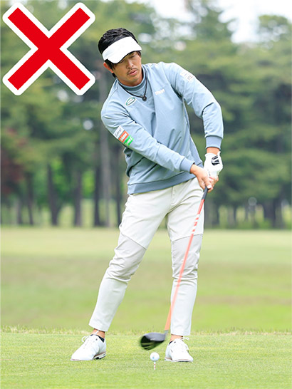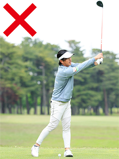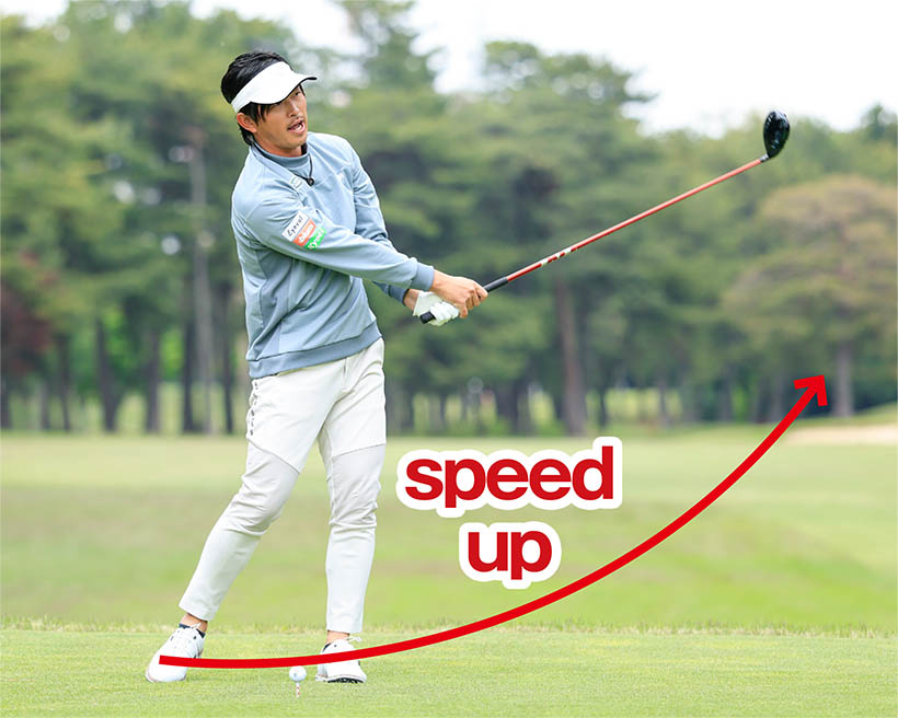 飛ばそうとして体幹を捻転させると腰にストレスがかかり、逆に回転が歪んで腰をますます痛めてしまうことになりかねません。