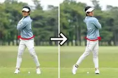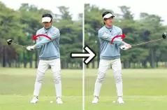 この素振り練習を繰り返すとカラダの余分な回転を抑制し、右腕をしなやかに振ってクラブヘッドを走らせる感覚がつかめます。