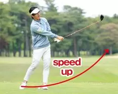 腕をムチのように振るというイメージですが、結果的にクラブヘッドの運動量を増やすことができるのです。トランクローテーションの比率は少なくていいので腰を無理に回転せずに、体重移動も少なめに抑えましょう。