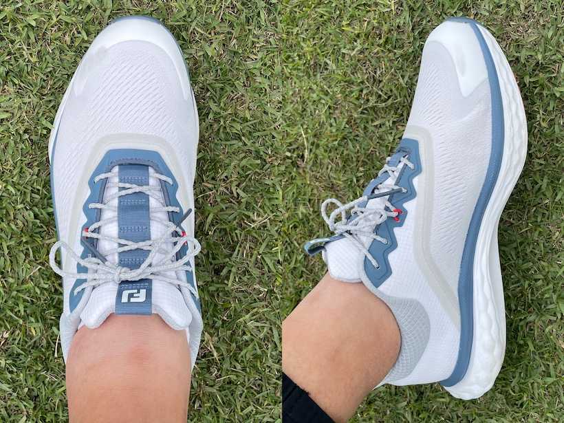 ウォーキングシューズのような軽快なヴィジュアルが印象的で、ゴルフシューズらしさを前面に出していないところに、フットジョイのゴルフシューズとしては新しさを感じました。