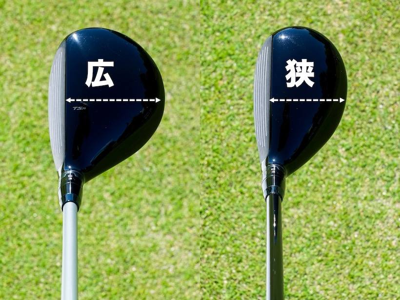 次は、ヘッド幅がの広さです。幅が広いほど重心深度が深くなるので、ヘッドの慣性モーメントも大きくなります。ヘッド幅が広い=直進性が高く、ミスヒットに強くなるということです。