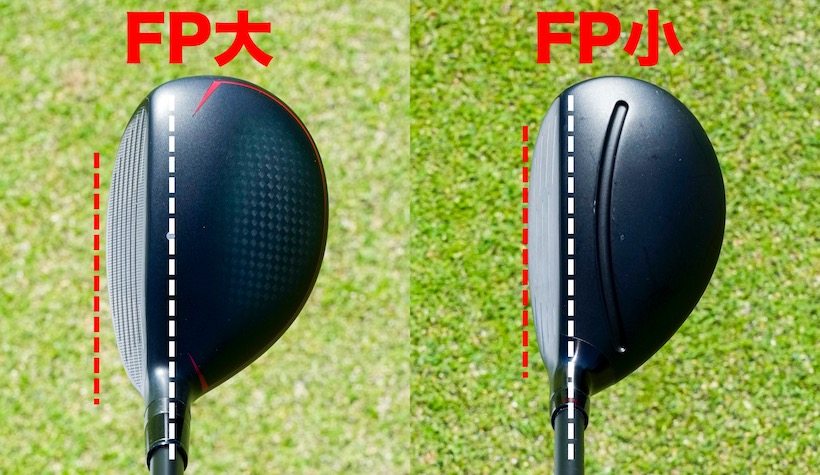 フェースプロプログレッション(FP)とは、リーディングエッジがシャフトの軸からどれだけ離れているかを示すものです。そして、リーディングエッジがシャフトから離れているほど、球の打ち出しは高くなります。逆に近いほど、打ち出しは低くなります。