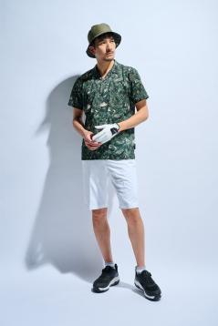 通気UVカットメッシュ総柄開襟オープンシャツ, 遮熱UVカットミニヘリンボンショートパンツ