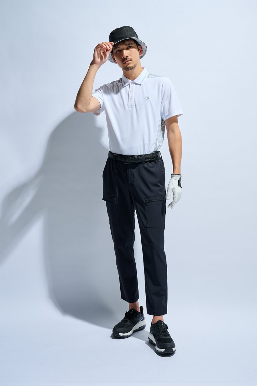 遮熱UVカット鹿の子切替半袖ポロシャツ, 遮熱UVカットミニヘリンボンカーゴパンツ