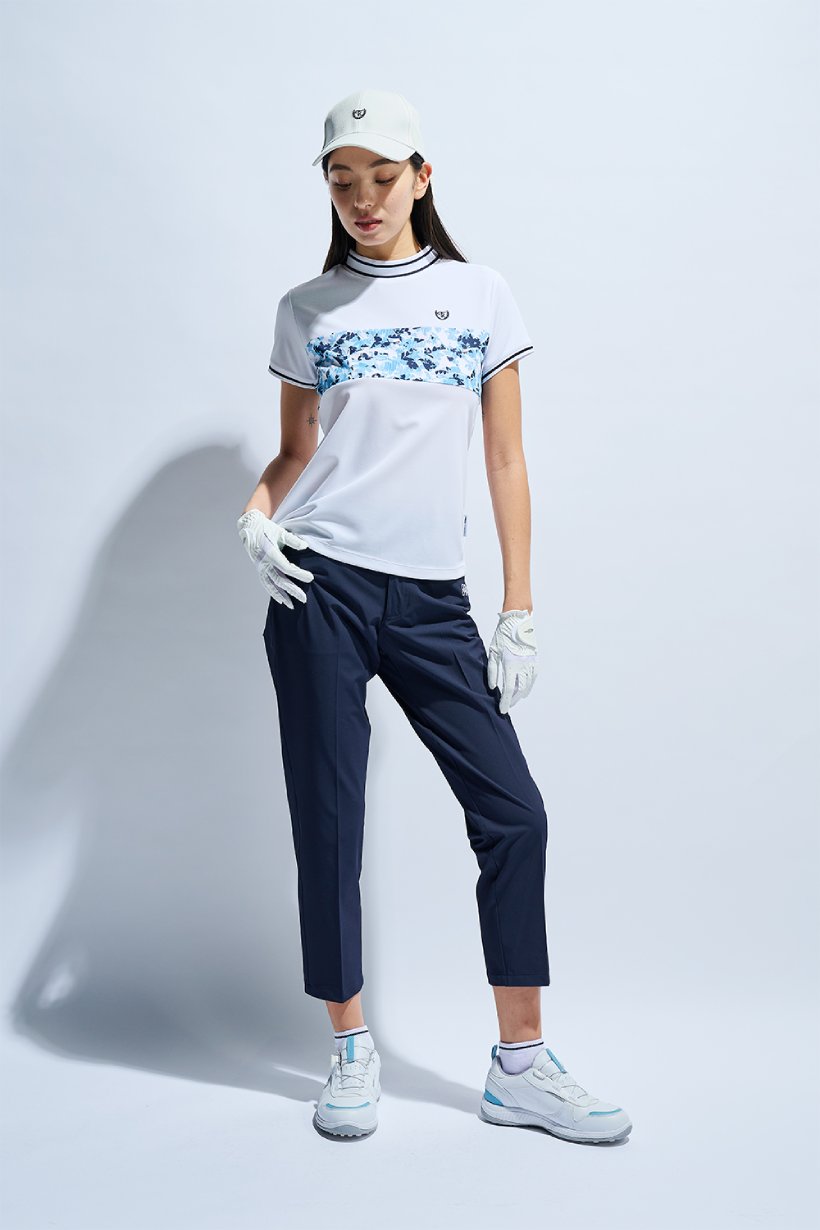 遮熱UVカット鹿の子柄切替半袖モックシャツ, 遮熱UVカットカルゼクロップドパンツ