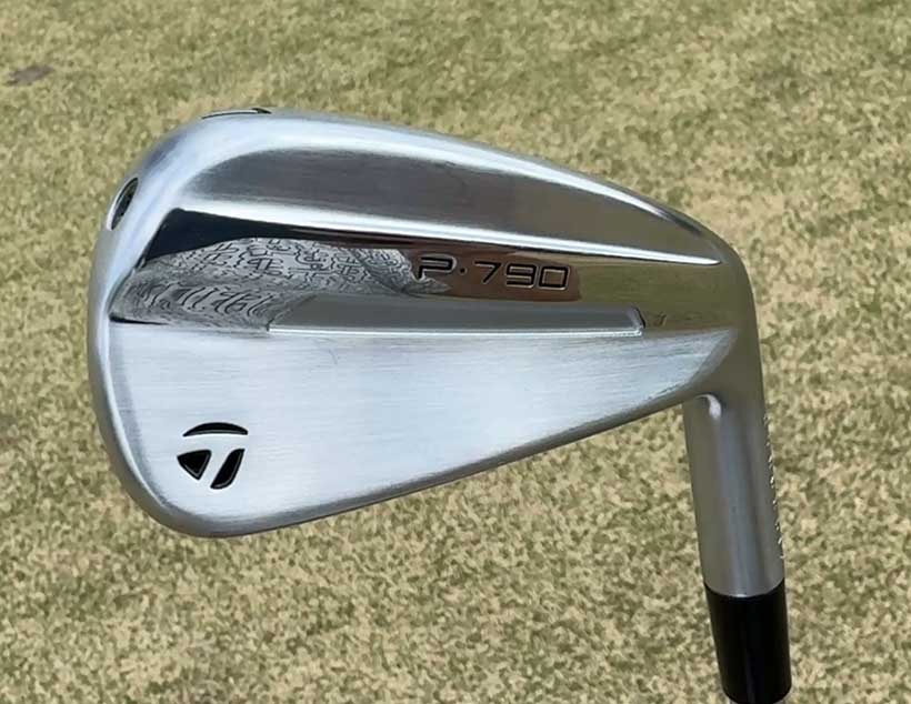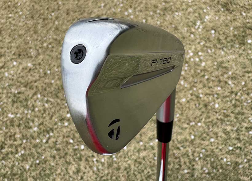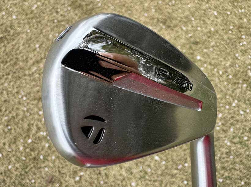 ヘッドのデザインは「とにかくカッコいい」です。今までのP790も当然カッコよかったですが、この2025年モデルはシャープさも増してべらぼうにカッコいい。バックフェースはシンプルながら、マッスルバックに近いようなデザインで、ロゴの入り方もいい感じ。パッと見ではこれが中空構造で、優しさも持ち合わせているヘッドだとは思えません。このアイアンがバッグに入っていると思っただけで、めちゃテンション上がりますね。テーラーメイドはウッドもそうですが、デザインが本当に上手だな〜といつも思います。