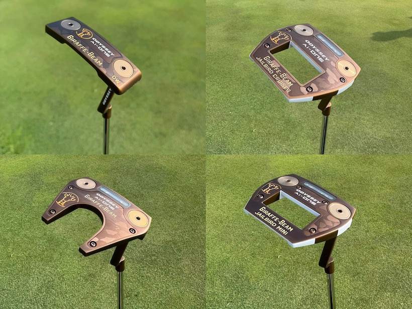 名称は「Ai-ONE GIRAFFE-BEAM」とのことで、Ai-ONEフェースの搭載によって、GIRAFFE-BEAMパターは芯を外しても、芯で打った時とほぼ同様の転がりを得られるようになり、建物の梁(はり)に使われるH型鋼が採用されたロングネックの効果によって打点ブレによる方向性の乱れにも寛容な、縦横のミスに強いパターになったということだ。