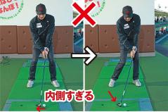 最初にボールの位置をチェック! ドライバーとアイアンの中間にセットしてる?