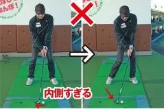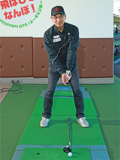 最初にボールの位置をチェック! ドライバーとアイアンの中間にセットしてる?