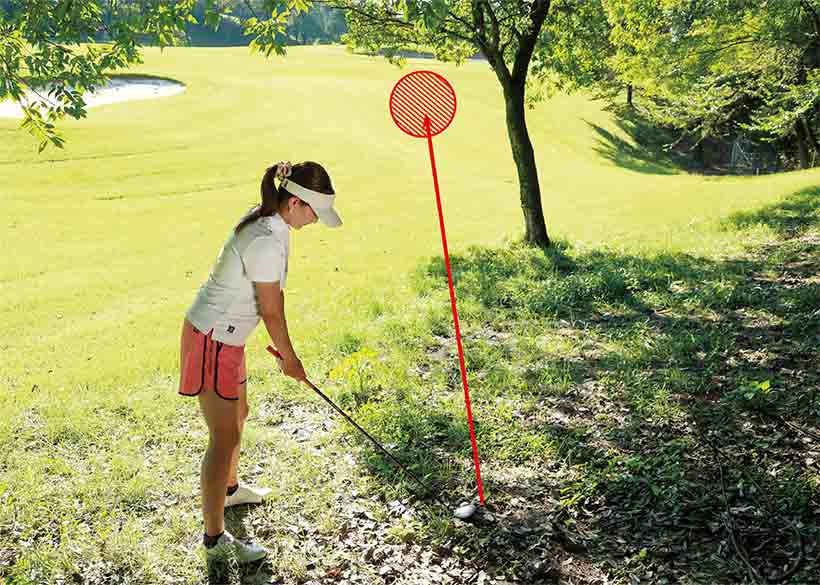 クラブが木の枝に当たらないかを確認