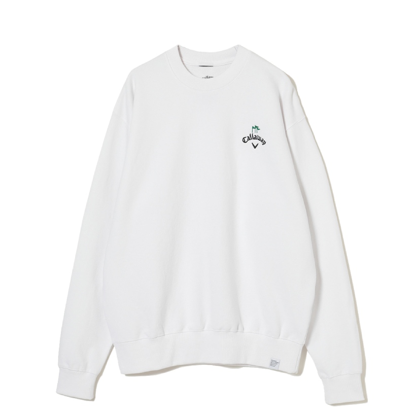 背面にCallawayとCLUBHAUSのロゴが縦に並ぶオリジナルスウェット。フロントにはシンプルながら洗練されたイメージのClubhaus FlagとCallawayのコンビネーションロゴを配置。