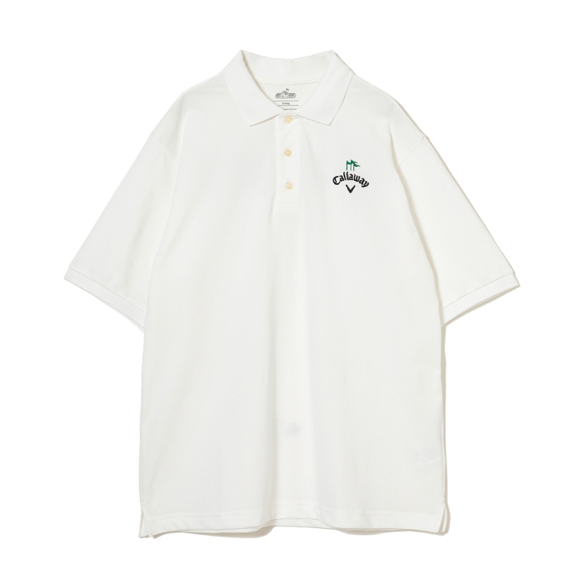 背中にCallawayのフィロソフィーを大胆にプリント。CLUBHAUSらしい絶妙なグラフィックバランスが光るポロシャツ。