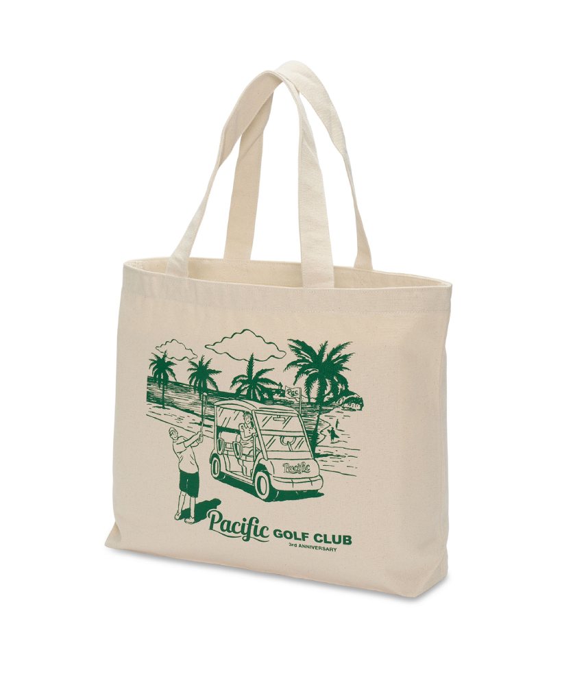 3周年を記念した新作アイテムとして、海沿いのコースでゴルフをするイラストレーションをプリントしたポロシャツとアニバーサリー仕様にデザインしたトートバッグが登場。イラストは「Pacific DRIVE-IN」でもお馴染みで、数々のメディアやファッションブランドとコラボレーションをするFACE氏が担当、ロゴデザインはブランドやショップのロゴ制作、イベントグラフィックデザインを行う冨安氏が担当。