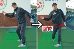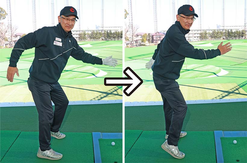 私は体重移動がうまくできていない人には足踏みの要領でバックスイングし、ダウンスイングすることをアドバイスしています。