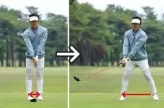 バックスイングの体重移動量よりもダウンスイングの体重移動量を増やそう