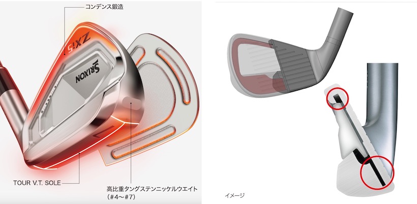 このように、もともとはタイプごとに違いが分かりやすかったんです。でも今は「スリクソン ZXi5」を例にとってみても、異素材を入れたりヘッド素材を変化させたりして“見た目はキャビティ”だけど、ひと昔前の「ポケットキャビティ」や「中空」と同じくらいの慣性モーメントの大きさにしたり、球の高さを出すために重心が低め・深めに作られたりしています。
