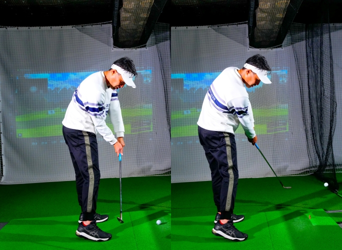 「いままで悪い動きでスイングを作り、それが固まってしまっているため、じつは正しい動きなのに体がダメな動きと感じてしまいます。せっかく正しい軌道でヘッドが遅れて入ってきているのに、それを嫌がって振り戻しでミスになる。そしてボールに当てることを優先するため、いつものスイングに戻してナイスショットが出て満足して家に帰る。じつはこれ、ダメな練習なのです」と内海プロ。