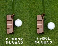 オデッセイによると、通常のパターはトウ側やヒール側に打点が1センチ外れると、ボール初速が約20%ダウンするという。つまり、10メートルのパットでは2メートルのショートになる。