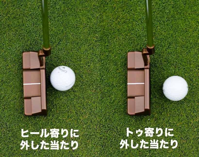オデッセイによると、通常のパターはトウ側やヒール側に打点が1センチ外れると、ボール初速が約20%ダウンするという。つまり、10メートルのパットでは2メートルのショートになる。
