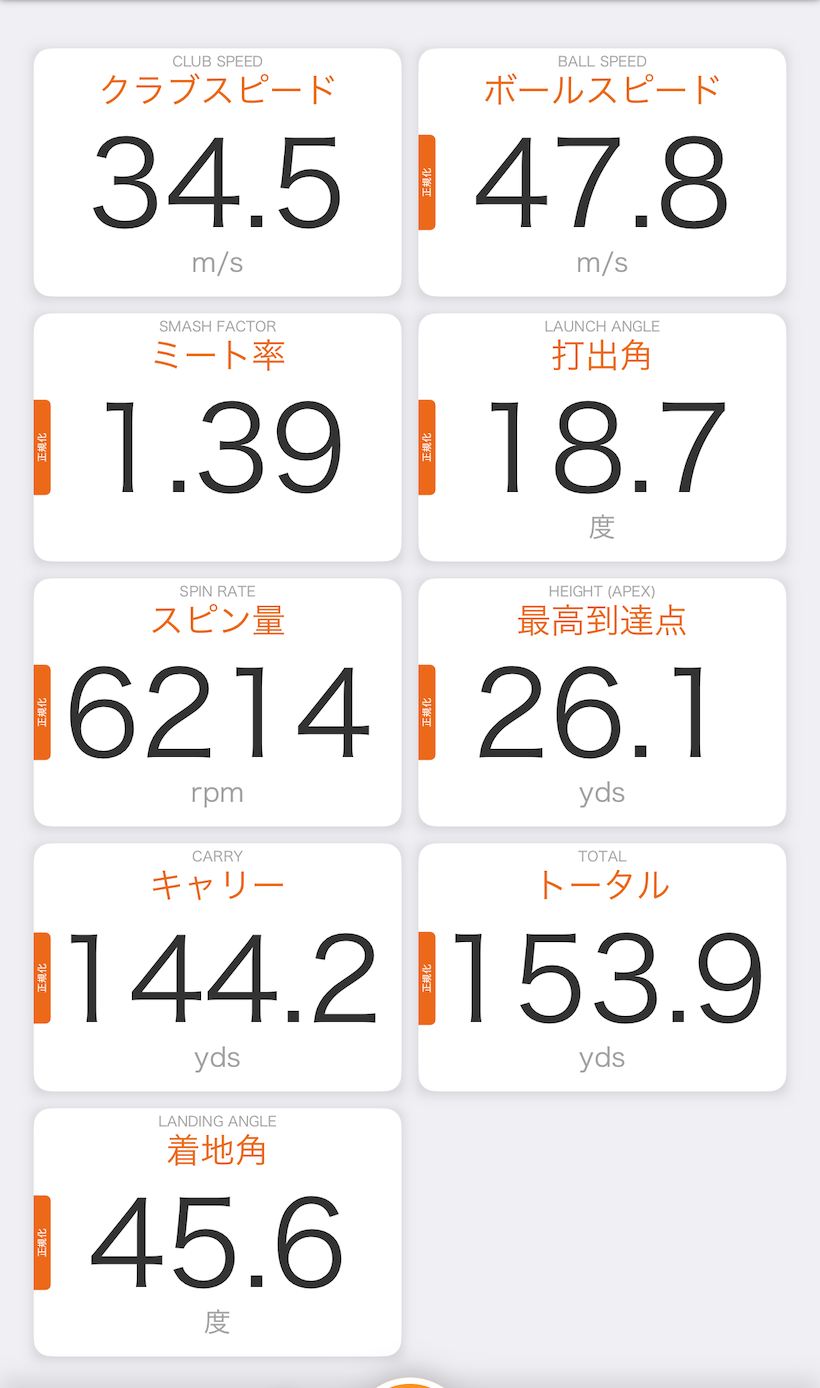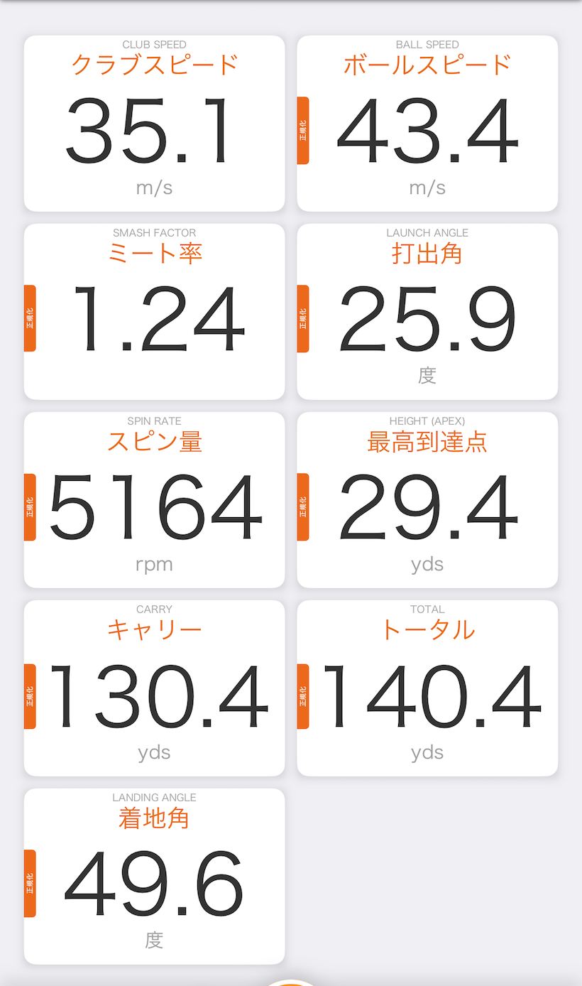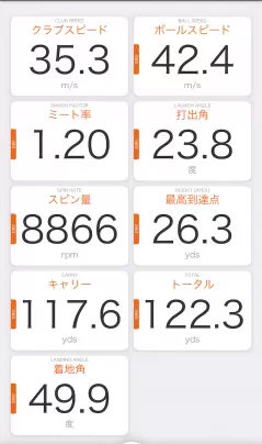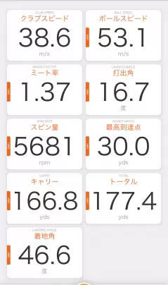 9番アイアンの参考値(1W/HS45m/sイメージ)