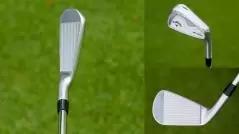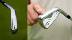 それとショートアイアンに限った印象ですが、前作よりフェースがやや三角形っぽく感じました。6、7番はそうでもないですが9番やPWはそう感じます。とはいえマイナス要素ではなく、逆にショートアイアンで引っかかりづらくなる効果があるように思えます。フェースが逃げ加減に見えるので巻いちゃう球が出づらいんです。このあたりは実際に手に取って感じていただきたいと思いますね」