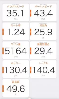 7番アイアンの参考値(1W/HS40m/sイメージ)