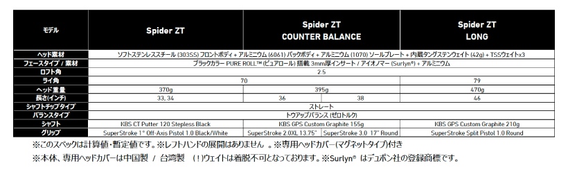 また「Spider ZT」 パターは、すでにPGAツアー1勝、LPGAツアー1勝の計2勝※2をあげており、その性能の高さも実証されている。
