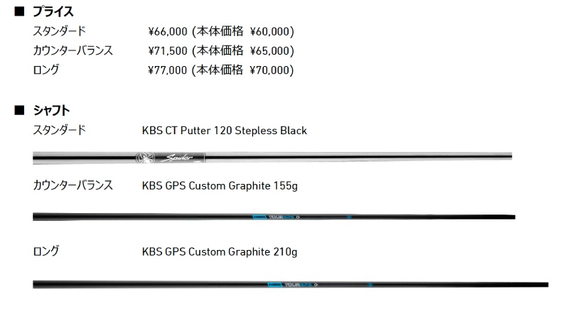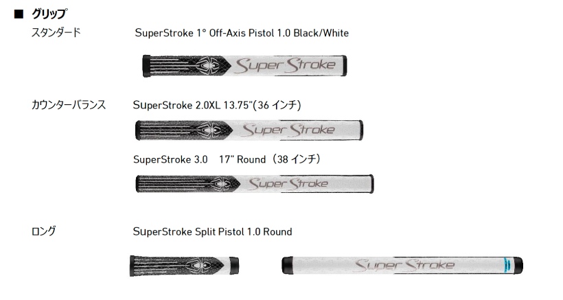 パッティングに悩むあらゆるタイプのゴルファーに対応するスタンダードレングス(33/34 インチ)、カウンターバランス(中尺36/38 インチ)、ロングレングス(長尺46 インチ)をラインナップ。それぞれの長さに合わせた重量にすることで、安定感と再現性が向上。