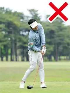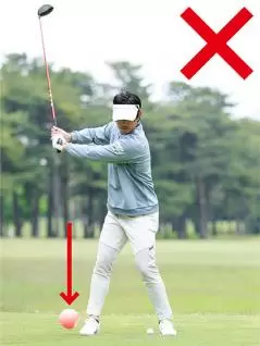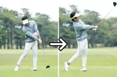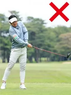 よく見るパターンとしては、インパクトで下半身が止まってカラダがスムーズに回転せず、両ワキがあいて左ヒジが引けてしまうような打ち方です。もう一つは、カラダは回転しているけど腕が振れていないためにクラブが遅れてくる振り遅れです。