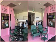グリーンとピンクが特徴的な、ラコステらしい洗練された空間にて、ゴルフコレクションの展示ほか、コブラゴルフの新作ウェッジを含む最新クラブの試打体験が可能となっている。また、ラコステオリジナルステッカーがもらえるかも★