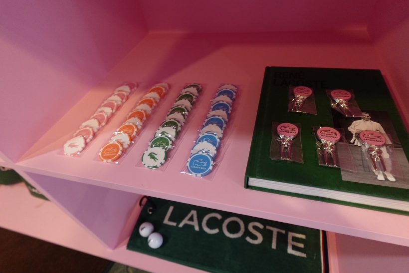 ラコステ ゴルフのマーカーやグリーンフォークなどのアイテムも発見。持っているだけで気分が上がるアイテムばかり。