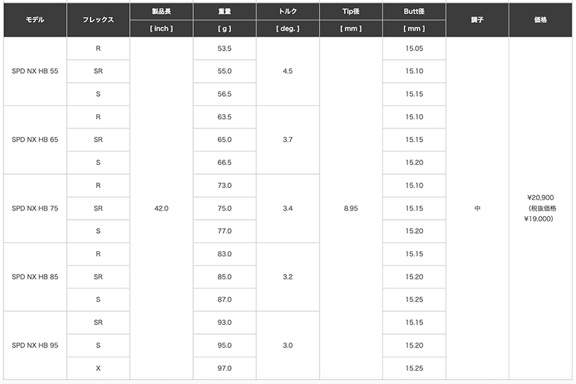 こちらもラインナップが多く50g台の「55 R」から90g台の「95 X」まで15種類のフレックスが用意されているので、FWのシャフトやアイアンのシャフト重量によって、自分に合うものを選ぶことができます。