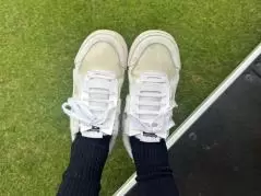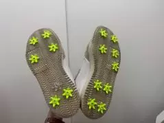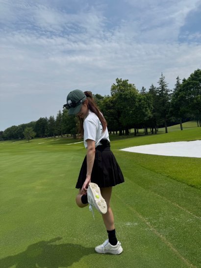 この通り、見た目が可愛くて気分はるんるん。お気に入りのスニーカーをゴルフシューズとして履けることも嬉しい上に、性能も問題なしだから驚き。18ホール、スパイクが取れることもなく、ストレスもなくラウンドを終えた。