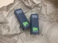 届いた「GOLFKICKS」のキットの中身はこちら。ゴルフボール1スリーブの箱の中に、スパイク鋲20個と、カスタムに必要なドライバー、マーカー、接着剤と作業に必要なものは全て入っている。