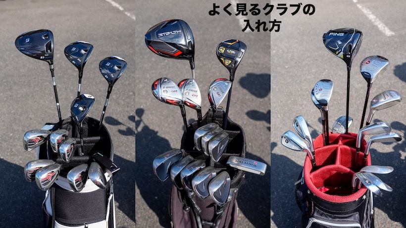 クラブの入れ方の順番にルールはありませんが、強いて言えば、ドライバーやウッド、ユーティリティはなるべく上の方に入れた方がいいです。カートの走行中にキャディバックに入っているクラブ同士が当たってしまうことがあります。アイアンやウェッジと同じところにウッドやユーティリティが入れていると、アイアンやウェッジと当たった時にヘッドが損傷してしまうリスクがあります。