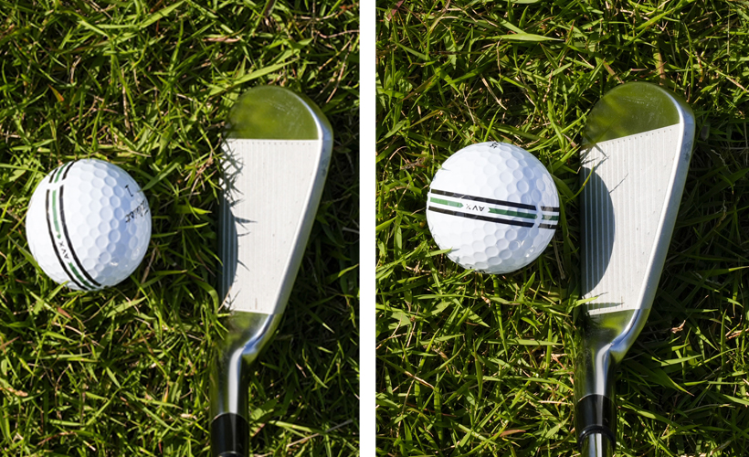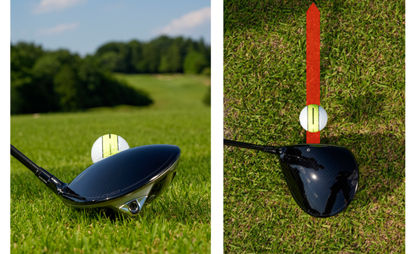 それ以上にメリットに感じたのがティショット。自分でラインを描いたものは「パッティング用」と思い込んでいたので、ティショットでターゲットにラインを合わせることを行っていなかったのだが、初めて“ハチマキ”ボールを9ホールでラウンド試打した時、ティショットでもラインをターゲットに合わせてみた。