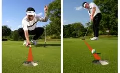 また、「パターでもティショットでも、ターゲットに平行にラインを合わせるのが基本ですが、ターゲットに対して直角にラインを合わせて、フェース向きのアライメントに利用するやり方が合う人もいます」という使用法も教えてくれた。