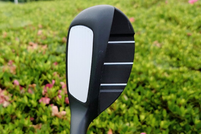 フェースにはホワイトホットのような白いインサートが入っていて、ネック側は低く、トウ側は高くなっていて、ユーティリティのようにフェースの面積が大きく見えるデザインになっている。